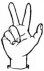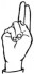 На ћирилици написано РУМЕНА МАРКЧЕВИЋ састоји се из 15 слова [?]. Исписано ћириличном једноручном азбуком за глувонеме: